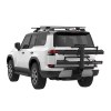 - Folding handle for raising and lowering the rack conveniently located at the end of the rack, not hidden away against the vehicle